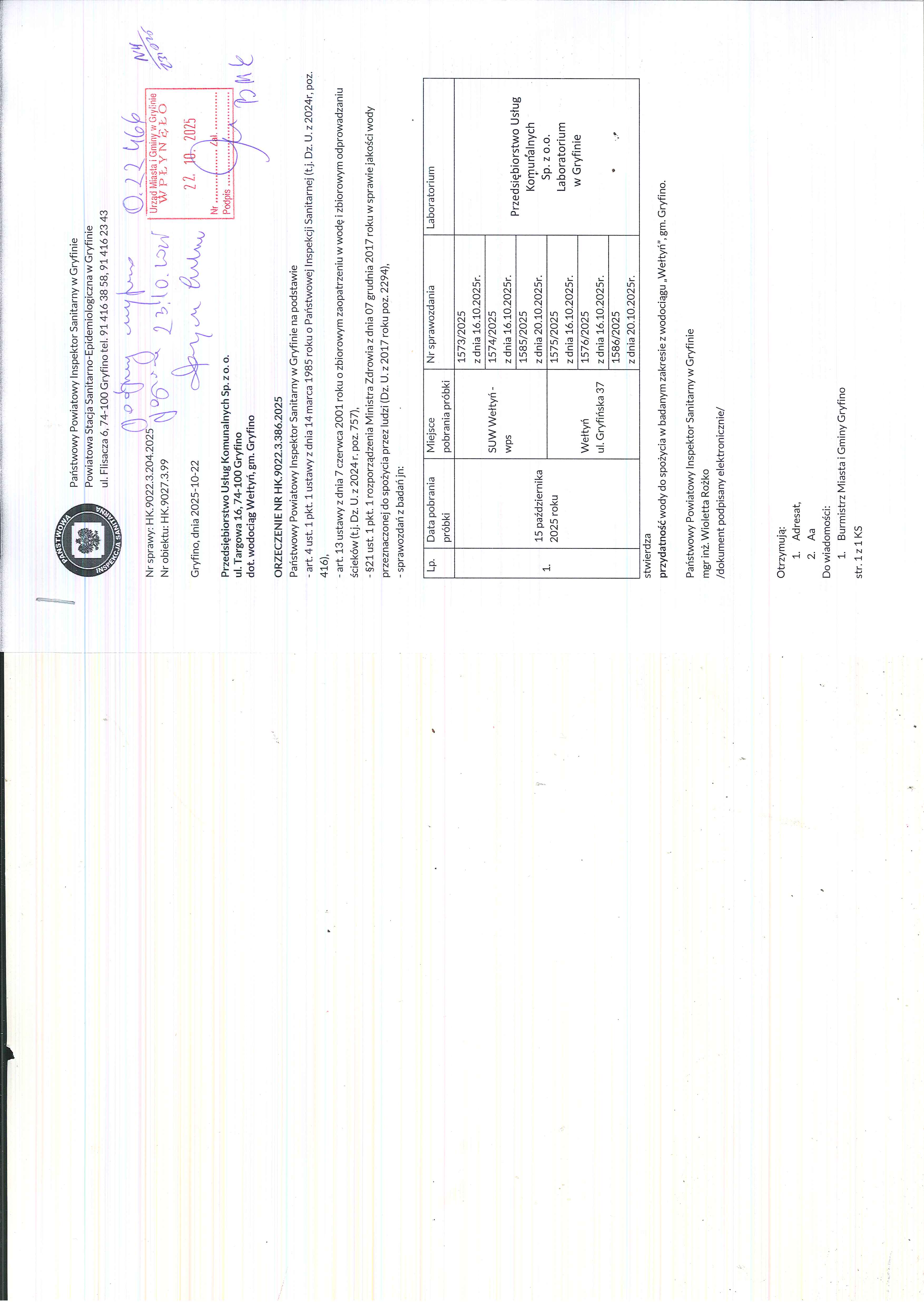 | Informacja z dnia 22 października 2025 r. o przydatności wody do spożycia z wodociągu "Wełtń" [648899 bajtów] | |