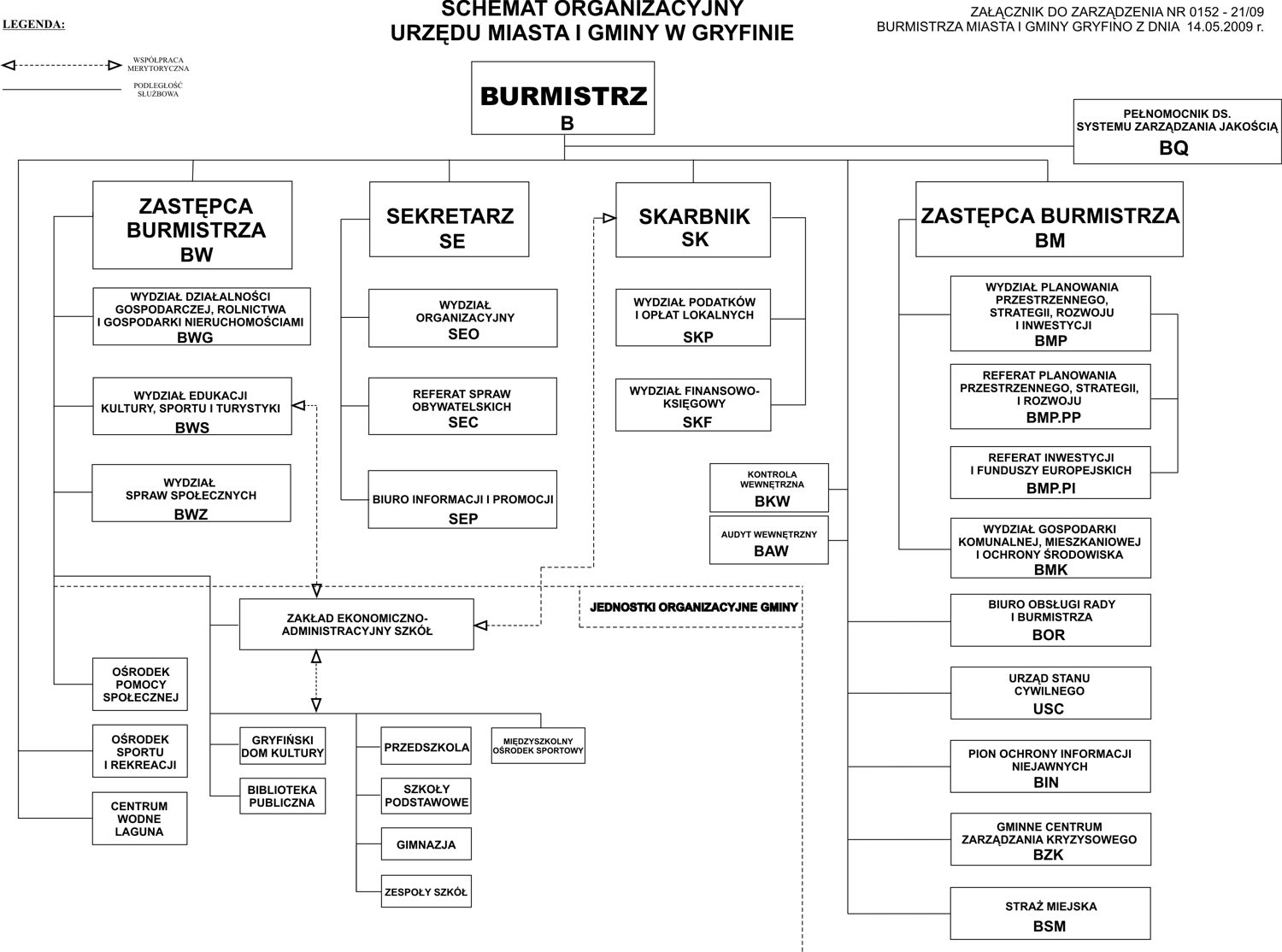W związku z podjętą decyzją o wdrożeniu w Urzędzie Miasta i Gminy w Gryfinie Systemu Zarządzania Jakością, zgodnie z wymogami normy PN – EN ISO 9001 : 2009, należy powołać Pełnomocnika do spraw Systemu Zarządzania Jakością. Ze względów organizacyjnych wskazanym jest również powołanie koordynatora w celu sprawnej i terminowej realizacji zadań.