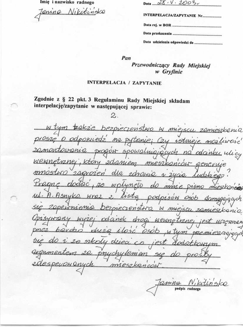 - Interpelacje radnych - załączniki: zal7 , zal8 ( strona1, strona2 , strona3 , strona4, strona5 , strona6, strona 7, strona 8 ), zal9,
