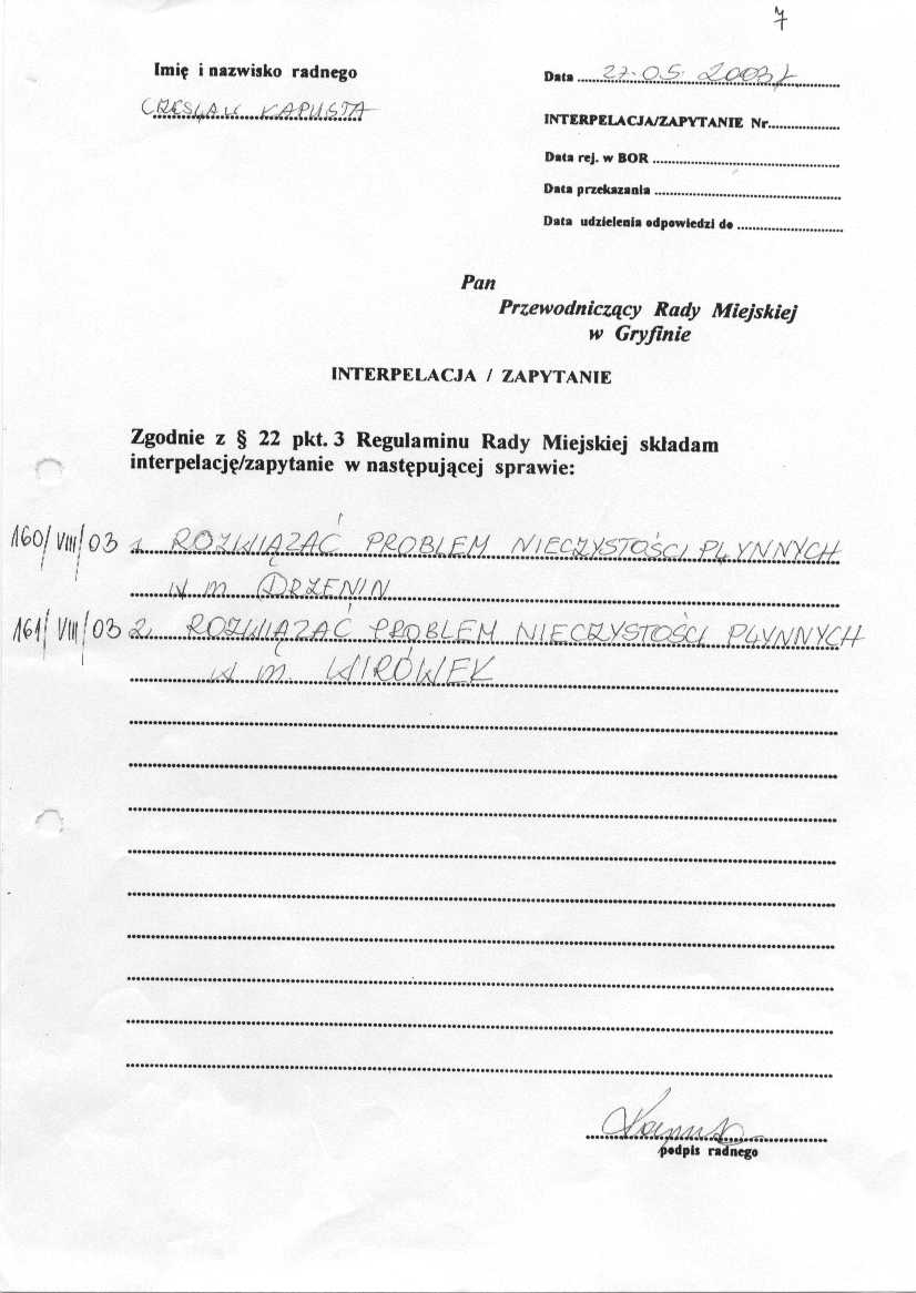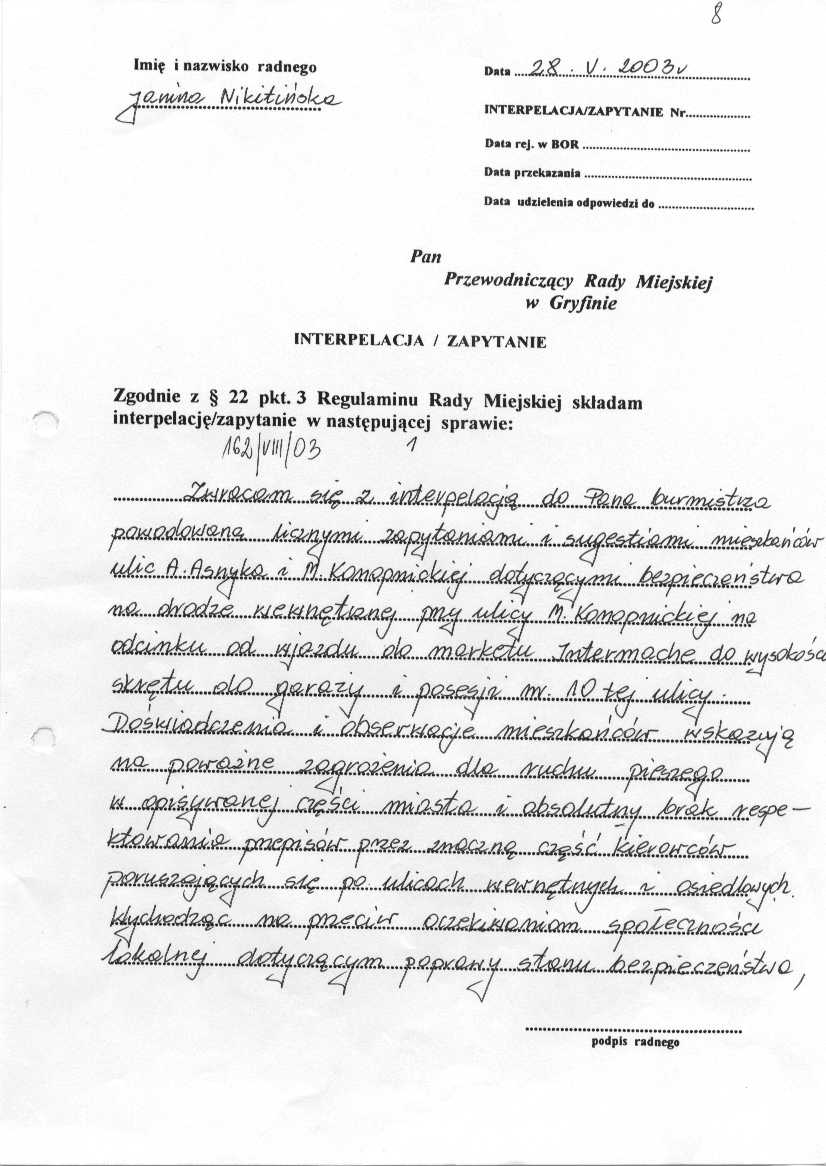 Ad.143/VIII/03 - interpelację przyjmujemy do realizacji.