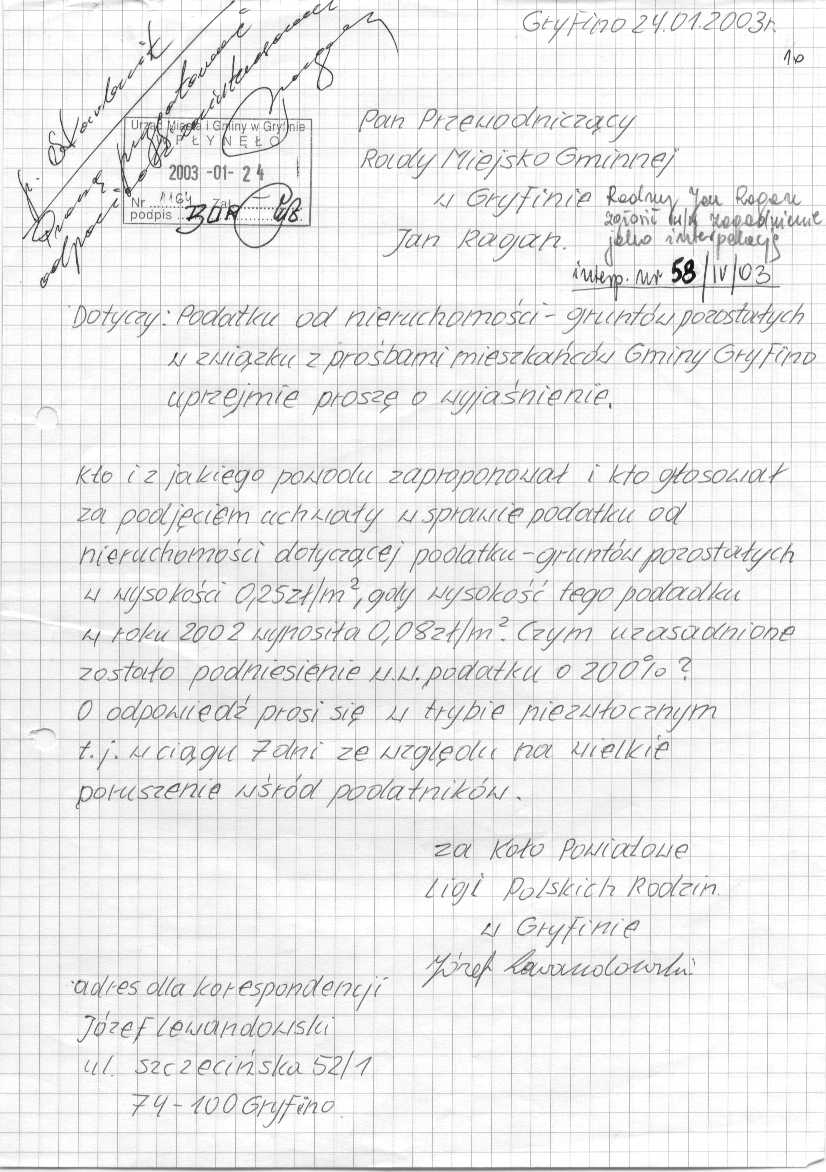 57/IV/03 - interpelacja w załączeniu (strona 1, strona 2)