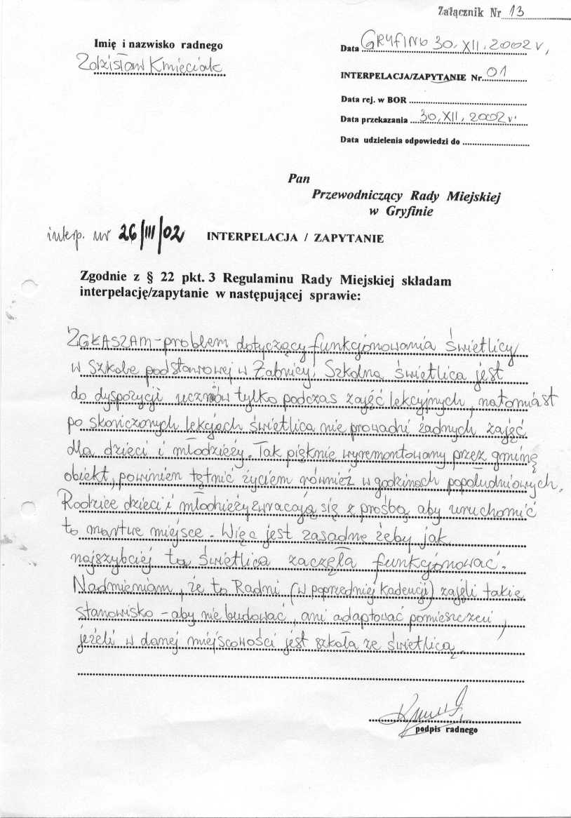 26/III/02, 27/III/02 - interpelacje w załączeniu (strona 1, strona 2).