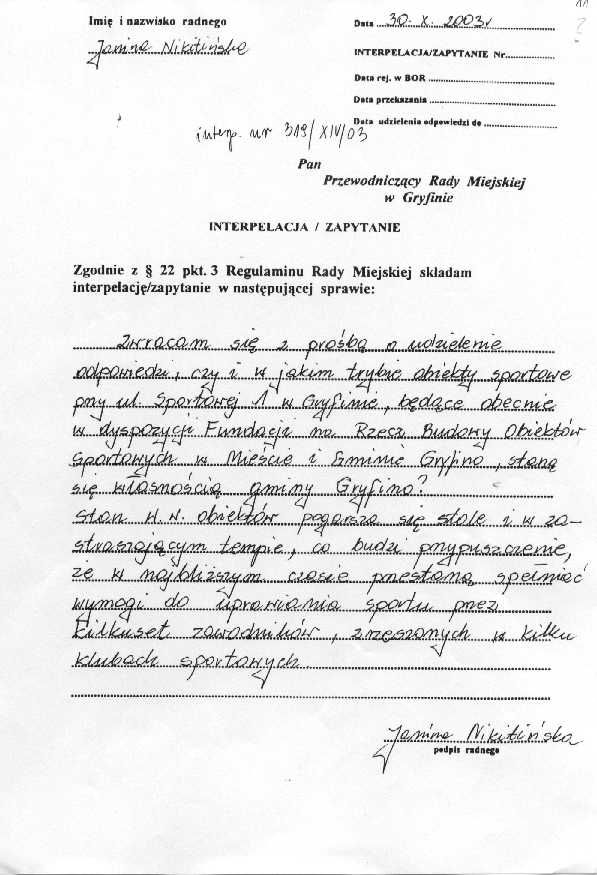 321/XIV/03 - interpelacja w załączeniu. ( strona_1   strona_2 )