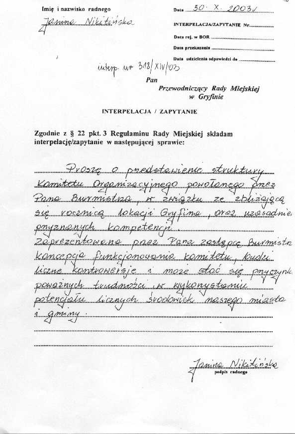 320/XIV/03 - interpelacja w załączeniu  ( strona_1  strona_2 )