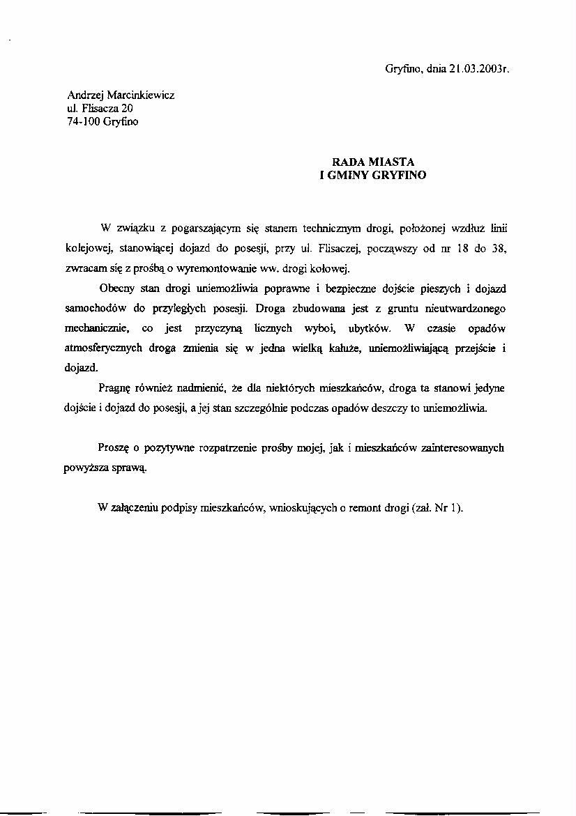 - Liga Polskich Rodzin Koło Powiatowe w Gryfinie zwraca się do radnych z apelem w sprawie zachęcenia mieszkańców gminy do składania wniosków o nieodpłatne przekształcenie prawa użytkowania wieczystego w prawo własności. Taki apel otrzymali wszyscy radni,